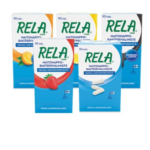 Hyvänmakuiset Rela-maitohappobakteerit jokaiseen päivään. Ravintolisä.